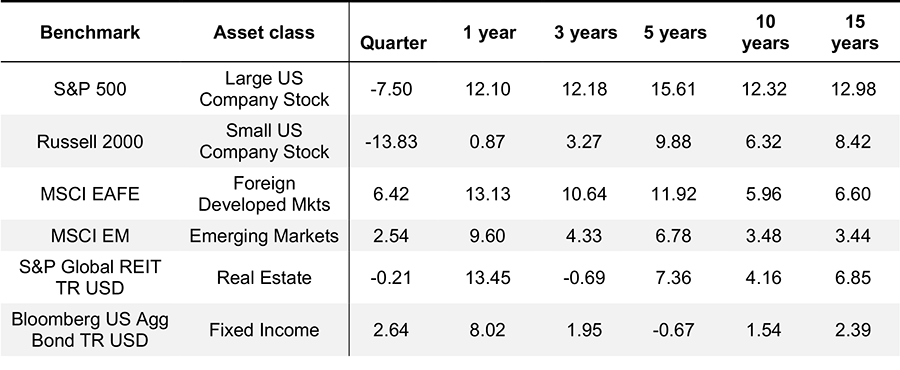 The following table summarizes the performance of major asset classes through 04/30/2025: