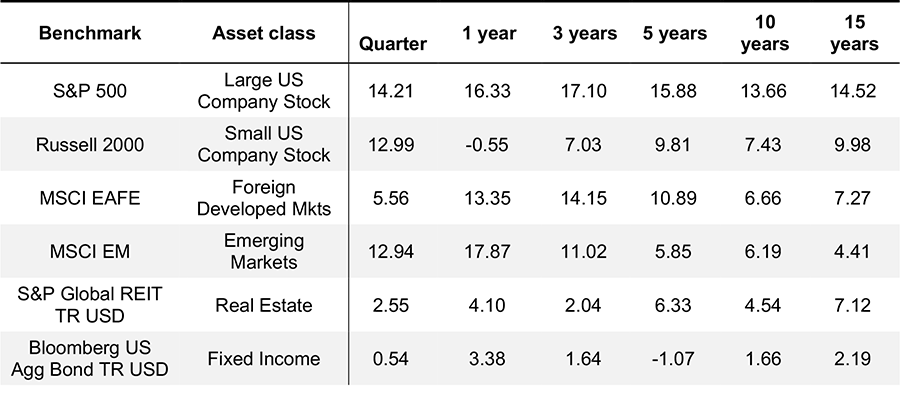 The following table summarizes the performance of major asset classes through 07/31/2025: