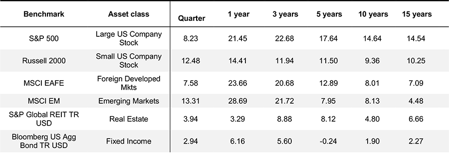 The following table summarizes the performance of major asset classes through 10/31/2025: